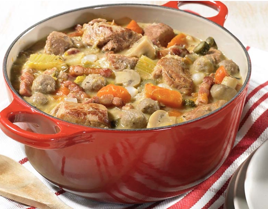 Kalfsblanquette met zwezerik, passende groentjes en aardappelgratin