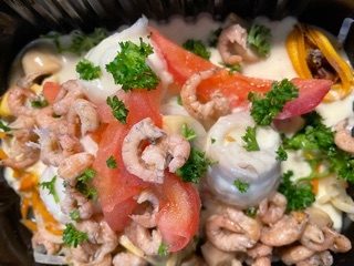 Heilbotfilet op z’n vel gebraden, groentjes uit de oven, mosterd – dillesaus