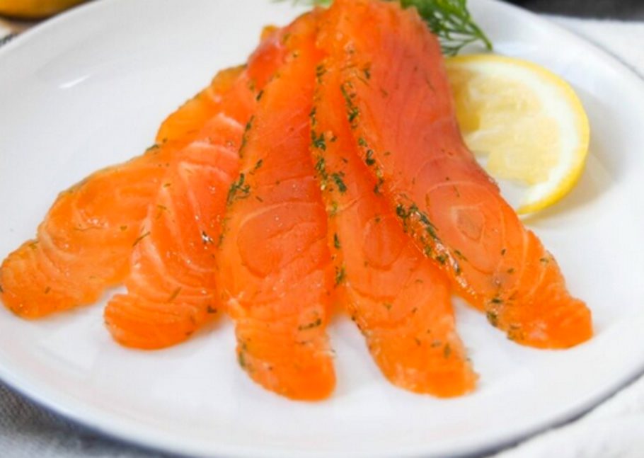 we snijden onze zalm op z’n kleine kant, nooit plat op de buik omwille van het vet van de zalm,